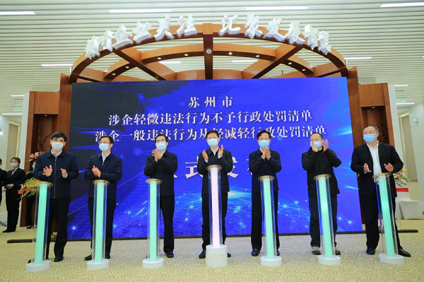 去年以来,苏州率先制定《苏州市重大行政决策程序规定实施细则》,全面细化重大行政决策程序规范和实施标准的同时,苏州市不断加大行政执法监督力度,持续深化“放管服”改革,进一步丰富了法治政府建设的“苏州经验”。为了让行政执法工作在“阳光下运行”,苏州在全市全面推行行政执法公示制度、执法全过程记录制度和重大执法决定法制审核制度三项制度,积极探索试点跨部门、跨行业的综合执法,加强食品药品、安全生产、知识产权等重点领域执法。苏州遴选组建苏州市行政执法监督“专家库”,深入开展执法案件评查。印发《关于规范涉企轻微违法行为不予行政处罚和一般违法行为从轻减轻行政处罚的实施意见》,探索实施包容审慎监管,优化法治营商环境。