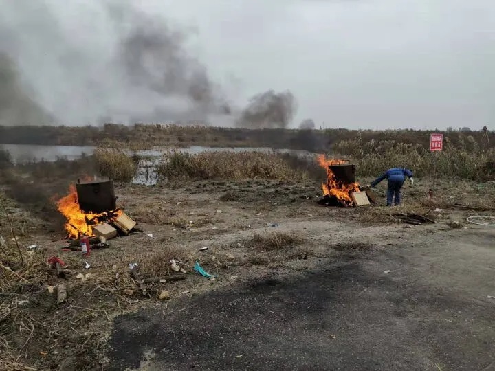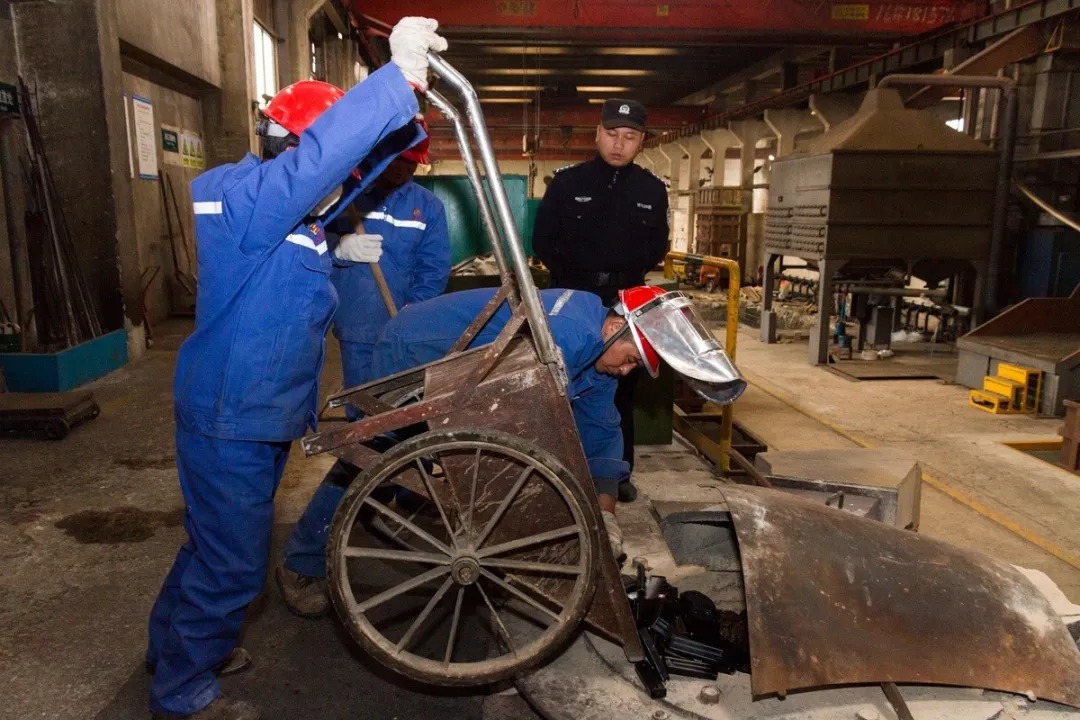 民警指挥销毁工人