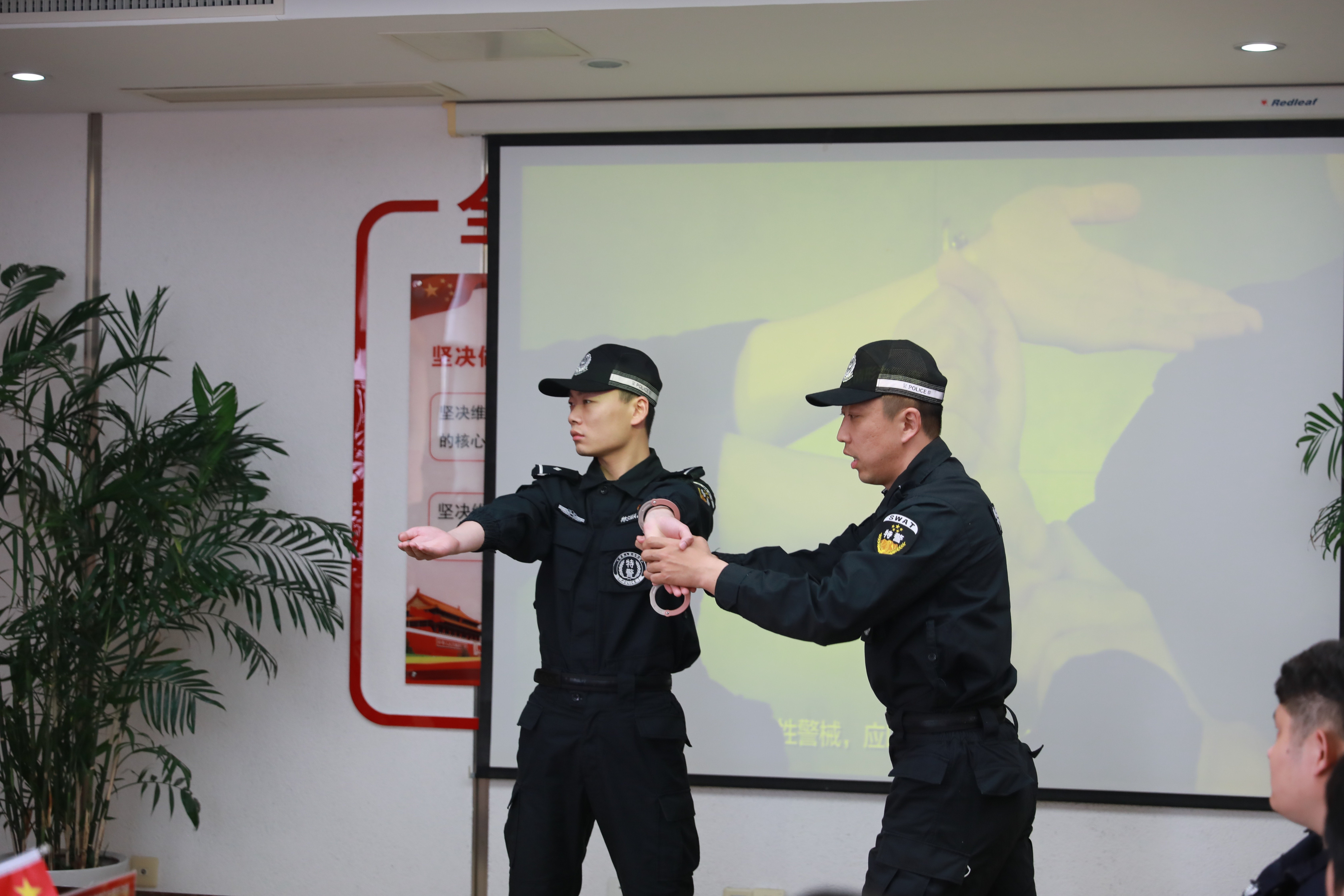 在《民警现场处置操作规范》宣贯培训课上,特警支队教官吕宗奇在2名队员的配合下,实操演示现场处置操作规范:“遇到这种情况,要根据现场情形,冷静应对、规范处置。”
