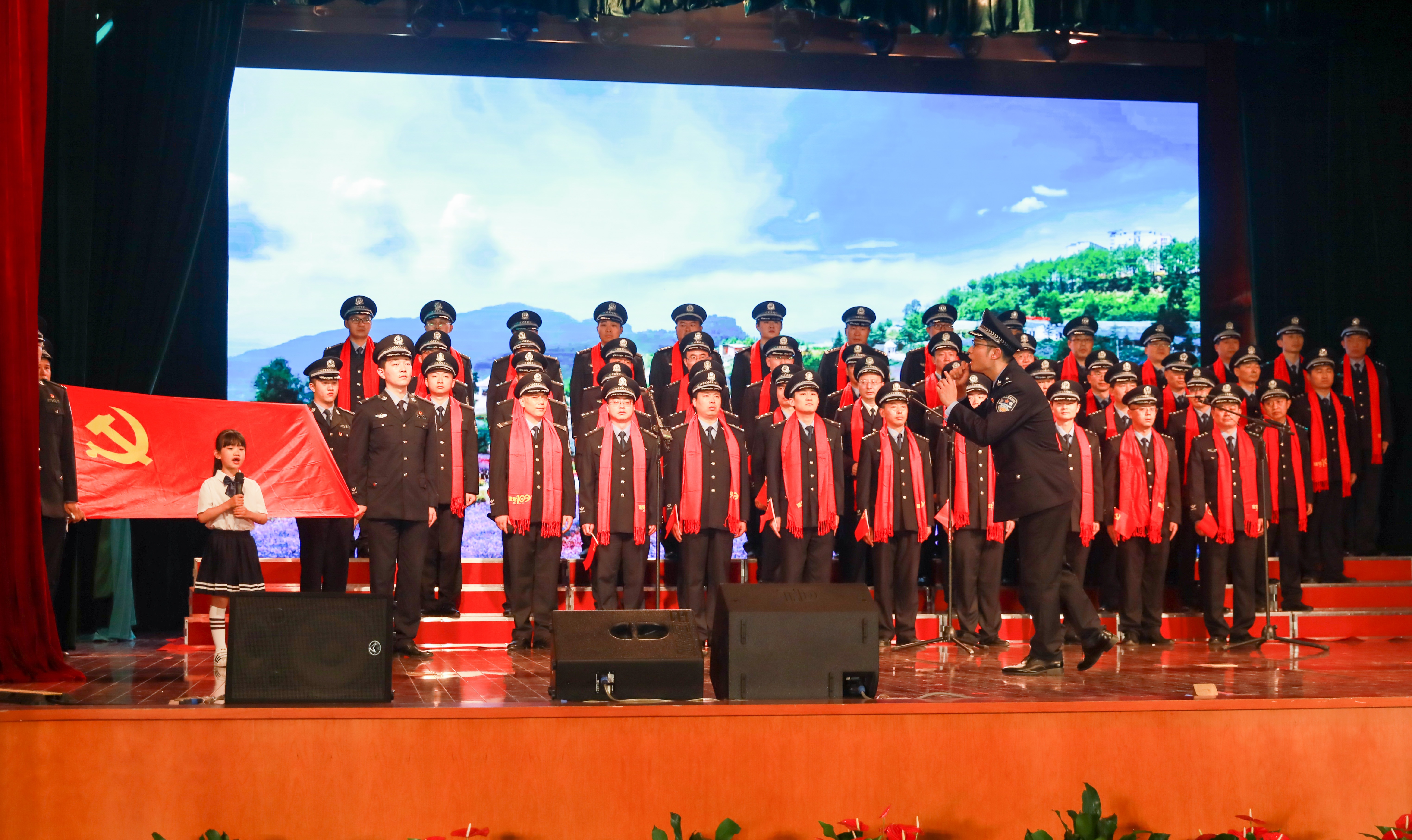 民警齐声高唱:“没有共产党就没有新中国……”“唱支山歌给党听……”。
