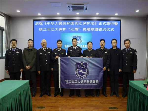 今年以来,围绕落实习近平总书记“共抓大保护、不搞大开发”的重要指示精神,江苏省镇江市公安局水上分局依托“江盾”党建联盟积极打造“红色江盾,四联护江”服务效能品牌,通过红色联学、机制联建、志愿联服、执法联动等举措全力做好长江大保护各项工作,更好地服务民生、服务水域经济发展,以实实在在的工作成效回应群众新期盼。