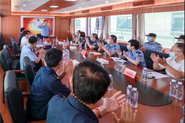 今年3月1日,水上分局牵头镇江海事局、长江镇江航道处、市交通运输综合行政执法支队、市水政监察支队、市渔政监督支队及市港口发展集团6家涉水单位共同成立了“江盾”党建联盟,在此基础上积极践行“红色联学强基础,多元联动显优势,志愿联服办实事,执法联合护长江”的服务承诺,并打好设计专属logo、举办各类座谈会、邀请涉江单位和船民船员共同参与创建工作的组合拳,筑牢水上“红色堡垒”,点燃“红色引擎”,切实把党建工作成果转化为看得见的服务动能。