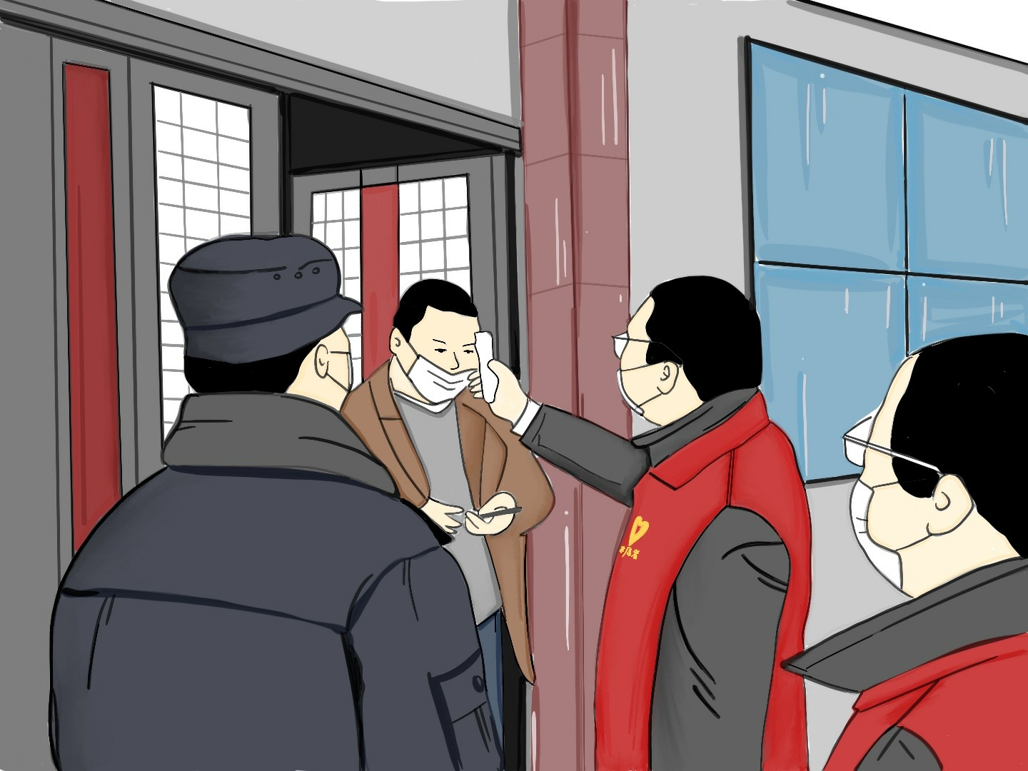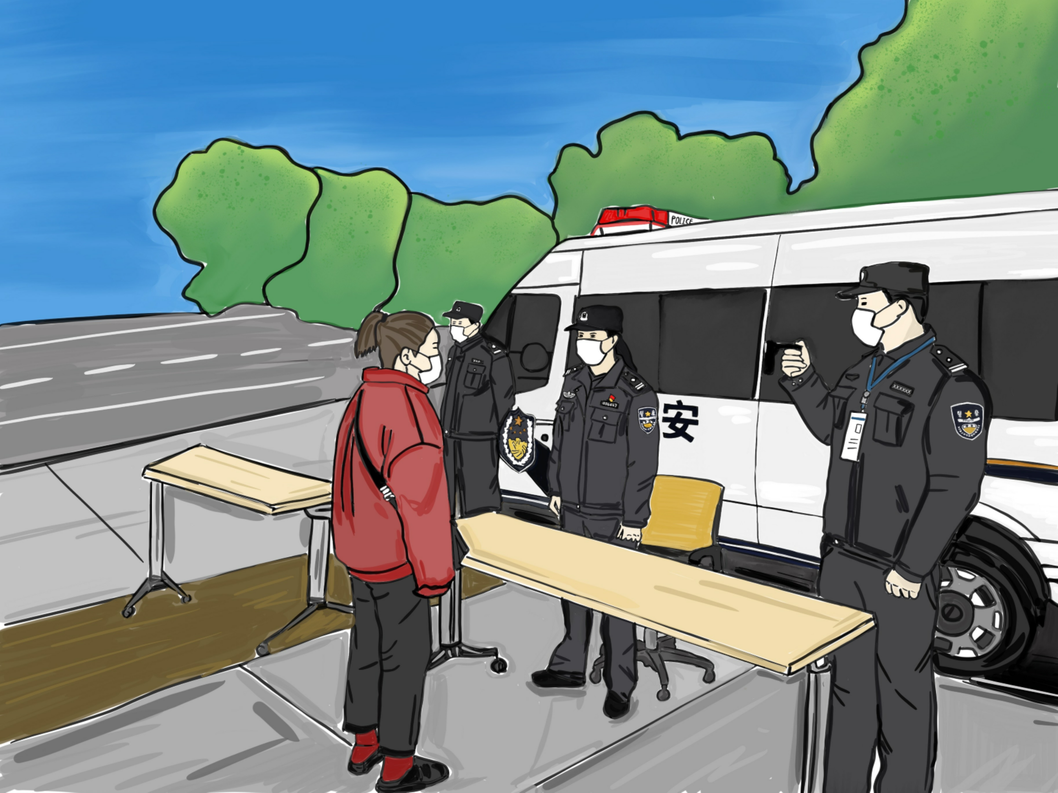 疫情最严峻的那段日子,社区民警与社区工作人员依旧每日按时挨家挨户地上门测量体温、详细询问情况,风里雨里,火红的马甲与火红的心是镇上靓丽的风景。